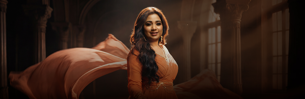 With a remarkable career spanning over two decades, Indian playback singer Shreya Ghoshal has recorded extensively across Hindi, Tamil, Telugu, Malayalam, Bengali, Kannada and Marathi. She first rose to national prominence after winning Sa Re Ga Ma Pa, before her breakthrough debut in Devdas established her as a leading voice in Indian cinema. Her expressive vocals, technical mastery and extraordinary range have made her one of the most versatile and celebrated singers in India.
